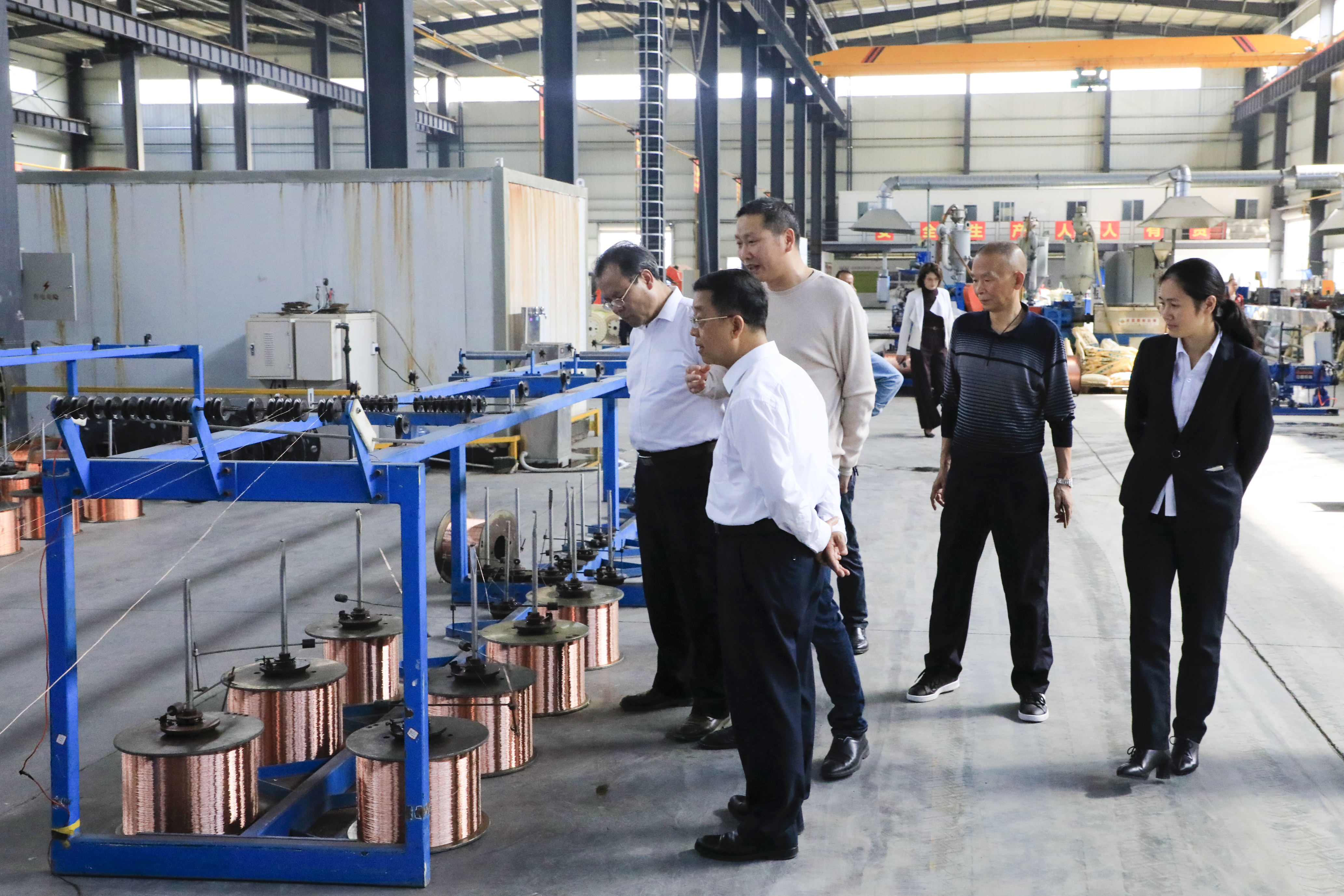 2020年11月18日,永州市副市長劉衛華與永州經開區黨委書記高守凱,和經開區管委會李瑛主任等一行人,蒞臨三湘電纜調研經濟發展情況,三湘電纜董事長申旺與總經理宮少華等熱情接待并陪同調研。