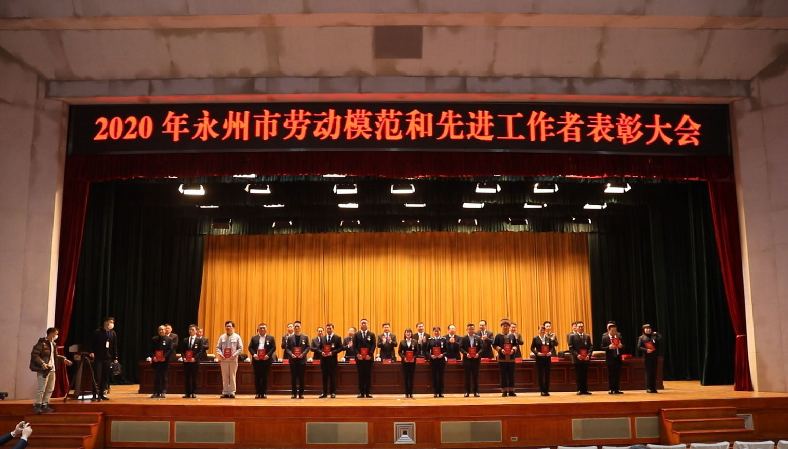 12月7日上午,永州市2020年勞動模范和先進工作者表彰大會在冷水灘舉行,隆重表彰過去5年來為全市經濟社會發展作出突出貢獻的100名勞動模范和先進工作者,三湘電纜員工唐文星作為2020年“永州市先進工作者”獲得表彰,上臺領獎。